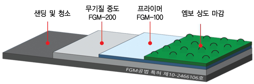 ■ FGM : 에폭시 단점을 보완한 습윤 면 시공이 가능한 유무기 하이브리드 공법■ FGM 특성 : 셀프 레벨링 제품 / 습윤 면에 시공 가능한 무기질 바닥재
