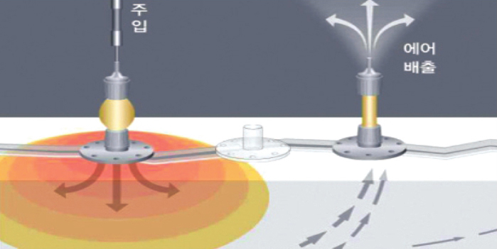 03. 순차적으로 T-포트에 주입 주입대기중인 T-포트 에어 배출